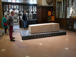 It said that after recovery from the battlefield, Richard's body was put on public display and then left in the hands of the Greyfriars Friary, whose people popped him into a modest grave. Over the centuries that followed, the precise whereabouts of the grave was forgotten. It was eventually rediscovered when the car park on the Friary site was dug up.