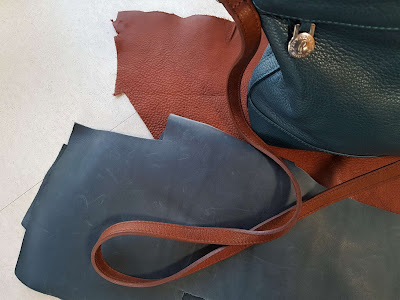 I bought these blue and tan offcuts, in case I wanted to make an internal pouch or shoulder pad to match the bag or strap:
