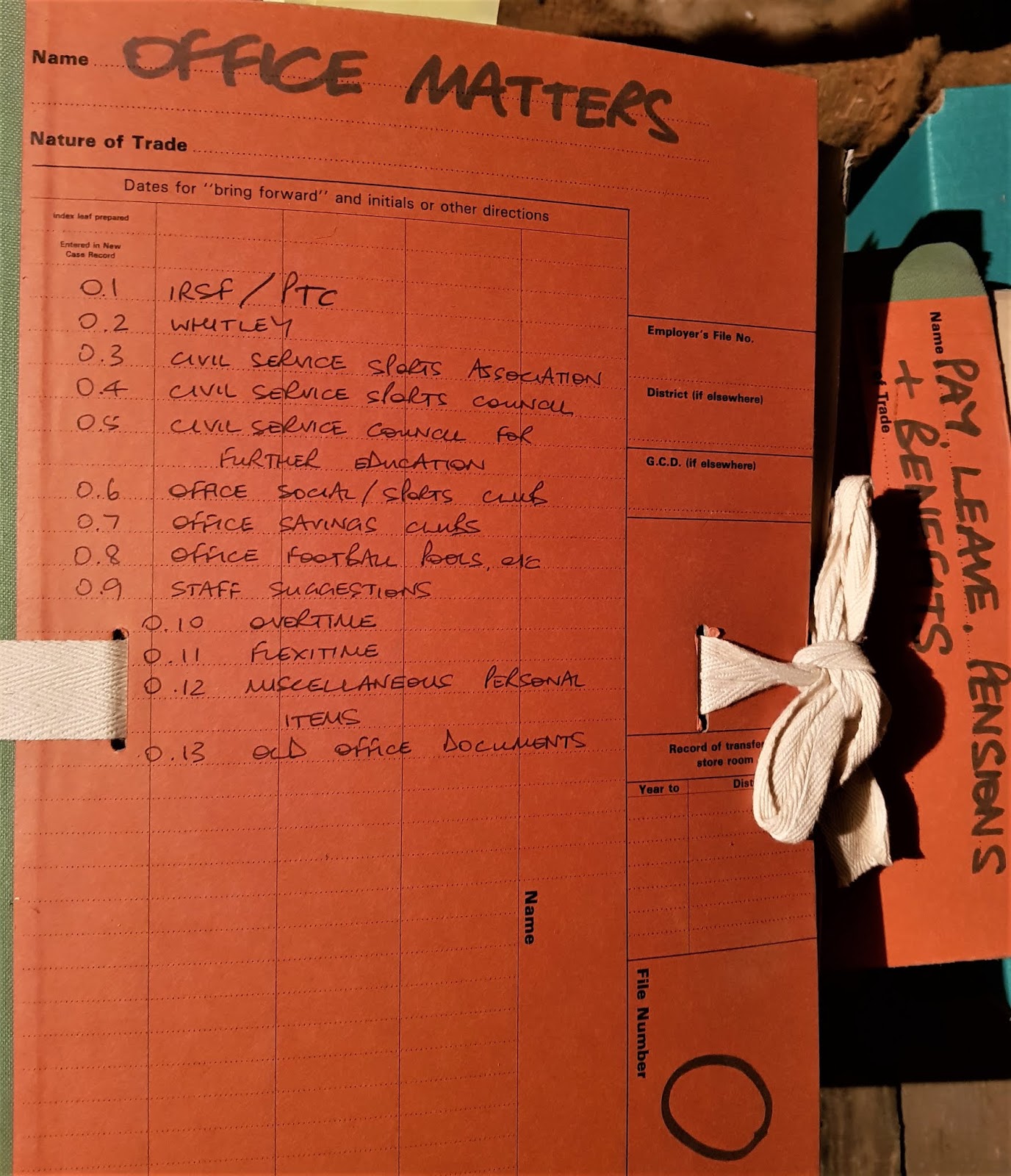 So, in my attic are a collection of thick orange folders, set up some thirty years ago to hold various records together. One of them deals with 'Office Matters'...