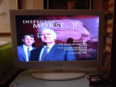 So last night I decided to blow the cobwebs off my 2008-vintage Samsung TV set and Toshiba DVD player, both unused since June, and watch Episode 1 of the first series, on Disc 1 of my box set. It was a straight adaption of Colin Dexter's book The Dead of Jericho - Jericho being an historically rather seedy canal-side part of Oxford, becoming a little more fashionable in the mid-1980s. In my study, I settled myself into my green leather reclining chair - the twin of the one in my lounge - with feet up. On the table next to me, a large mug of coffee; the remote controls for TV and DVD player; and of course LXV for grabbing pictures off the TV screen. The TV and DVD player sprang into life, and I was ready to press the 'play' button for a two-hour treat. I had of course half-forgotten The Dead of Jericho storyline, and couldn't quite remember what was coming. But that was fine.